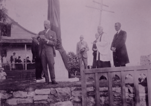 The unveiling was August 24th 1926. At 3.30 p.m. the procession of those taking part in the ceremony proceeded from the North door of the church to the Memorial Cross in the east end of the church property and facing the road. Mr. A. H. Campbell of Toronto who had been prominent in the erection made a short introductory speech and the Cross was then unveiled by the Right Honourable Sir Charles Fitzpatrick, G.C.M.G. and was dedicated by the Rev. F. G. Vial D.C.L. The Rev. Mr. Anderson of the Presbyterian Church then offered up a prayer. Sir Charles gave an inspiring address in which he detailed the events which brought Britain into the war on a question of honour. “This memorial”, he said, “speaks to us of something more than individual loss and individual sacrifice. It is personal in character, but it is also symbolic. It speaks of Canadians, almost 600,000 in number, enlisted for service and also of the more than 60,000 who gave their lives as the supreme sacrifice of our Canadian people to maintain the honour of our common Empire. They died that we might live a self-respecting nation, mindful of our obligations and to meet the burdens which we must now face as our soldiers did the enemy at Vimy Ridge, without flinching. More than that, they died that we might pursue our destiny as a united people.”